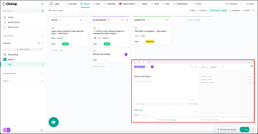 ClickUp 是一項除了看板之外還提供許多功能的服務。利用甘特圖、儀表板、思維導圖、表單和待辦事項列表。