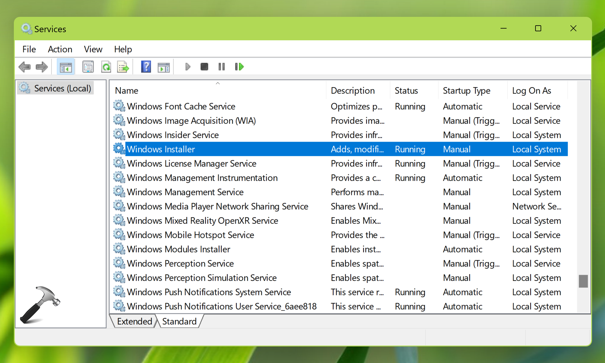 services.msc命令。 - 在“服務”窗口中,向下滾動並找到Windows安裝程序服務。由於您遇到此問題,因此它可能沒有運行。