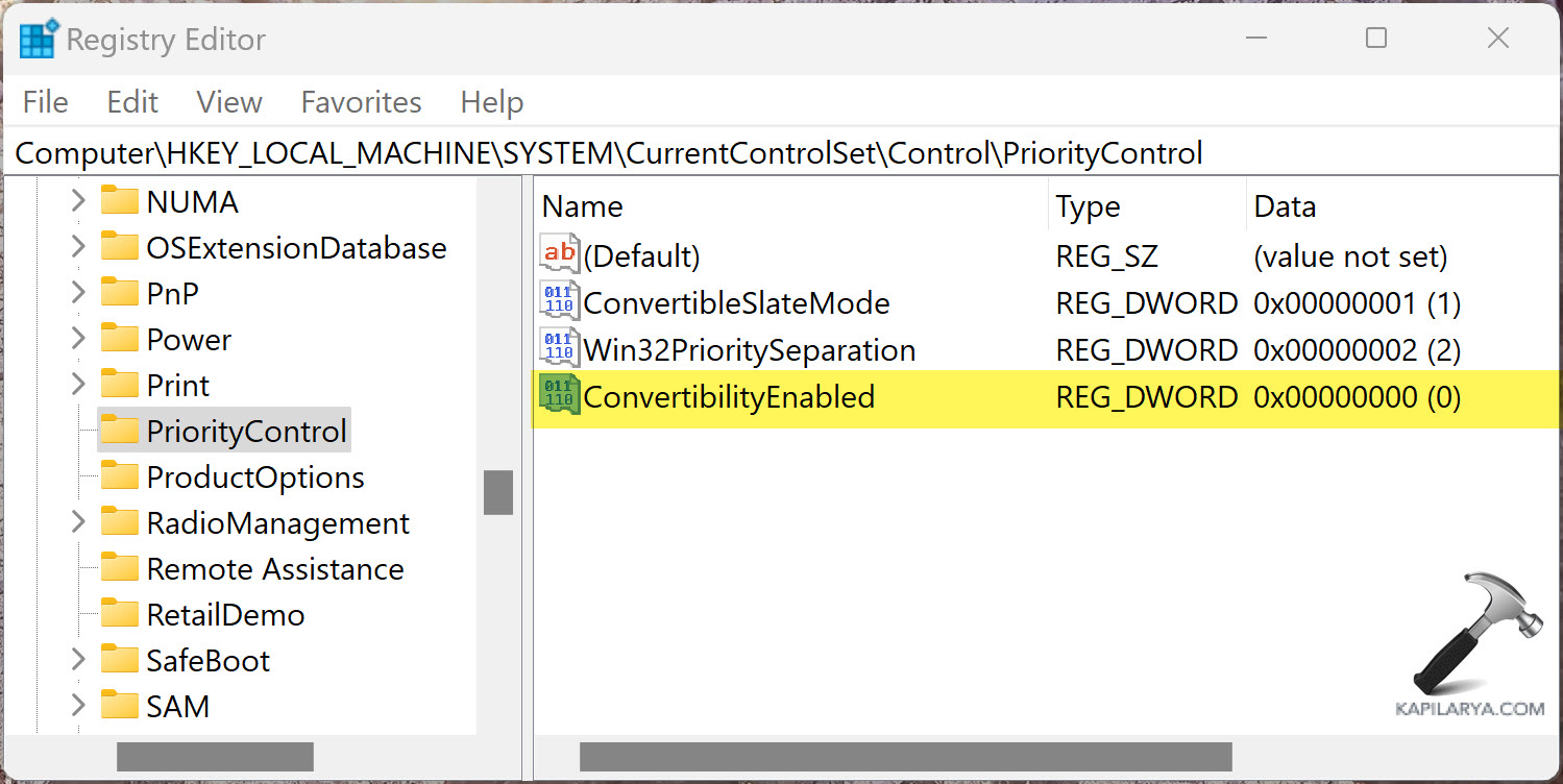 3.創建/更新ConvertibilityEnabled將註冊表 DWORD 值數據設置為 0。