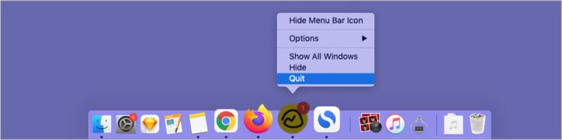 您是否正在使用編輯應用程序或媒體應用程序嘗試讀取/寫入驅動器?如果是,請退出此類應用程序。你可以右鍵單擊應用程序圖標從 Dock 中選擇辭職。如果您無法確定要退出哪些應用程序,請保存您的工作並退出所有應用程序。