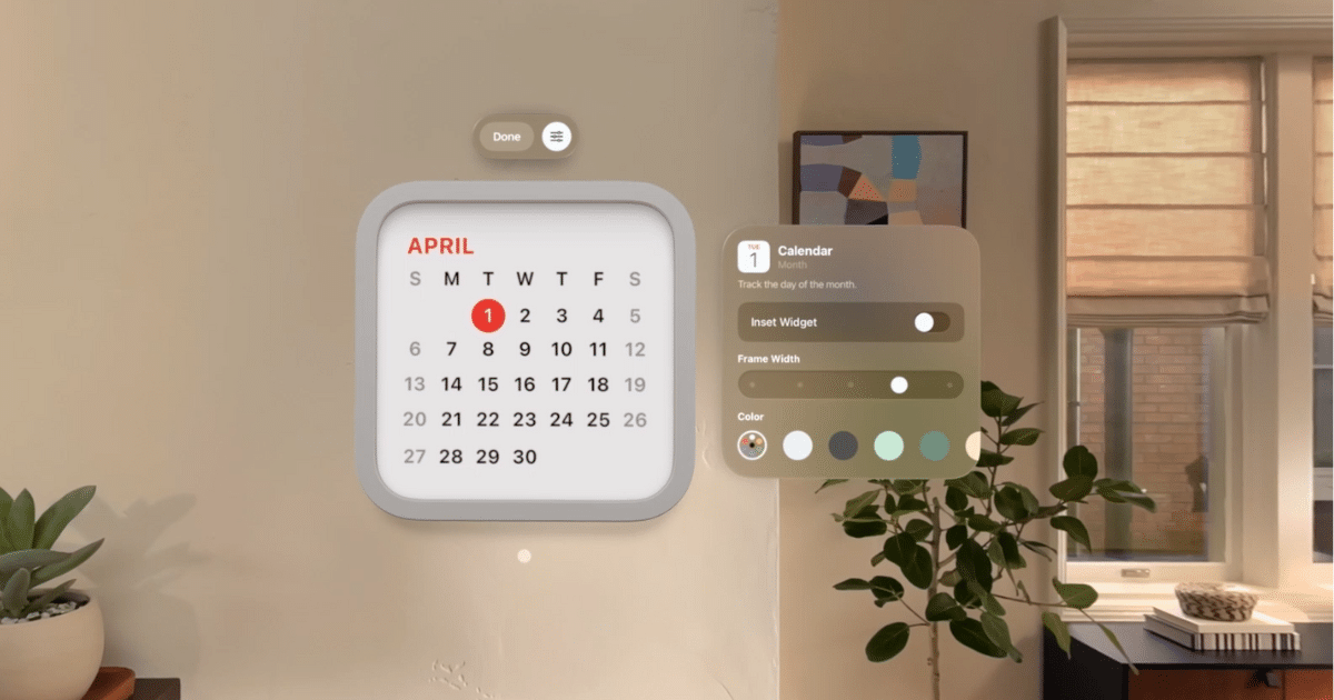 小部件不再局限於平面屏幕。在visionOS 26中,它們成為您可以放置在物理空間中任何位置的空間對象,無論是牆上的時鐘還是照片窗口。