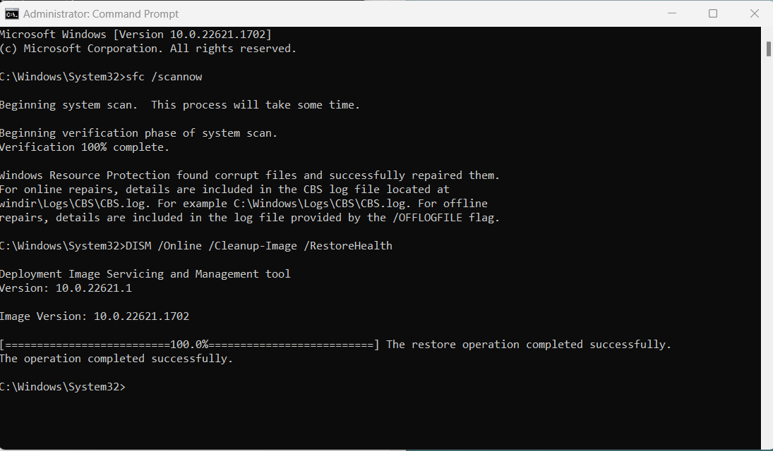 修復 4:執行系統文件檢查器掃描以查找損壞的文件