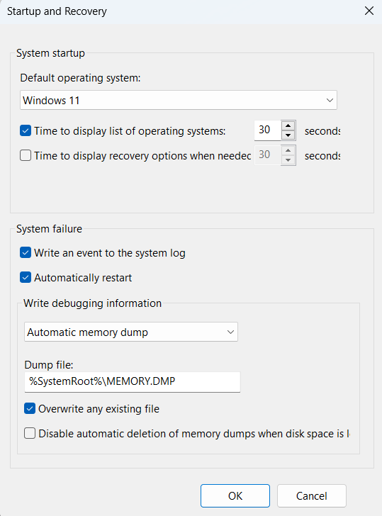- 單擊旁邊的複選框顯示操作系統列表的時間。