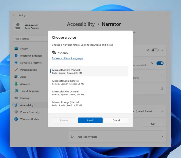 此更新引入了新的中文和西班牙語自然語音,使“講述人”用戶能夠舒適地瀏覽網頁、閱讀和撰寫郵件以及執行更多操作。新的西班牙語(西班牙)語音為 Microsoft Alvaro、Microsoft Elvira 和 Microsoft Jorge,以及西班牙語(墨西哥)的 Microsoft Dalia。
