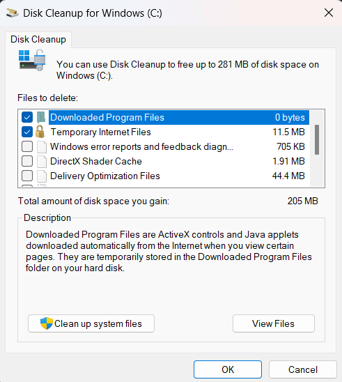 定期運行磁盤清理有助於優化驅動器以實現更快的操作。
