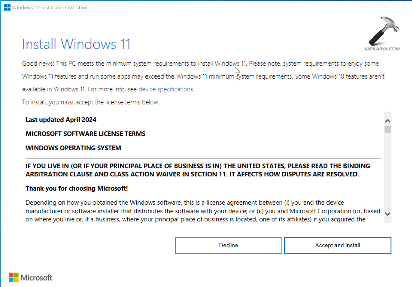 下載後,只需單擊 .exe 文件即可啟動安裝助手。單擊接受並安裝以繼續。現在該工具將自動獲取 Windows 11 2025 更新並安裝。