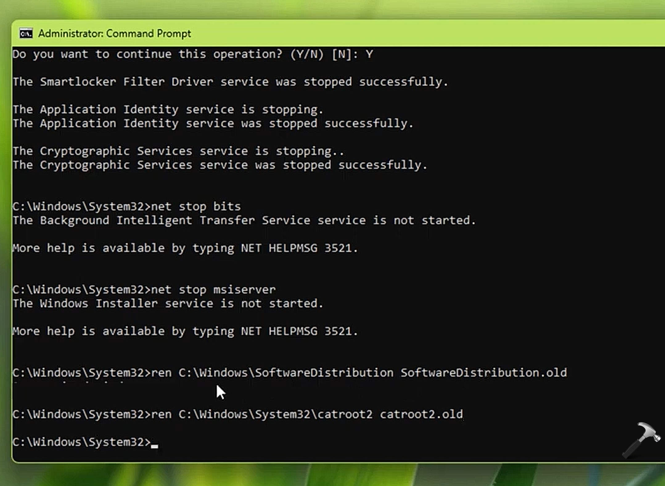 ren C:WindowsSoftwareDistribution SoftwareDistribution.old