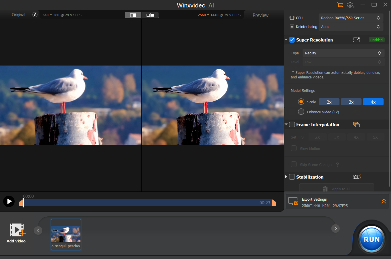 - 分辨率提高(高達 4 倍):告別模糊的圖像! Winxvideo AI的AI技術可以顯著提高其分辨率,呈現更精細的細節並恢復清晰度。
