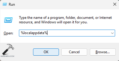 步驟1-首先,輸入Windows + R並打開運行對話框。接下來,複製並粘貼下面給出的環境變量,然後按 Enter。