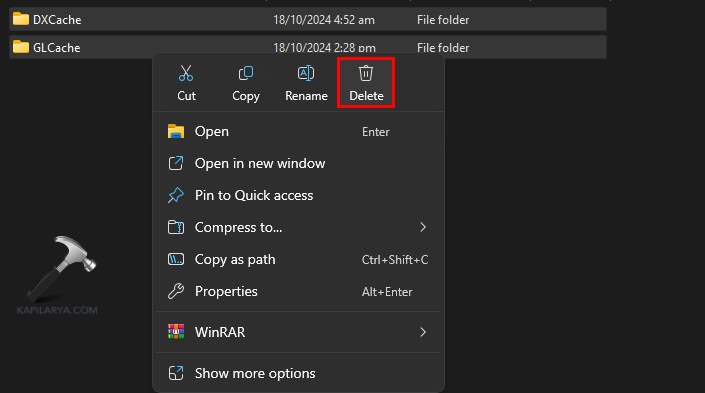 步驟3-接下來,打開 GLCache 和 DXCache 文件夾,刪除這兩個文件夾中的所有文件。