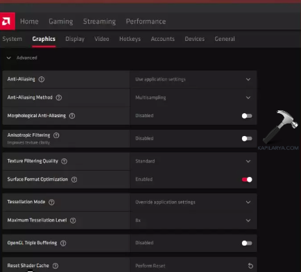步驟2-接下來,轉到圖形 > 高級 > 重置著色器緩存。