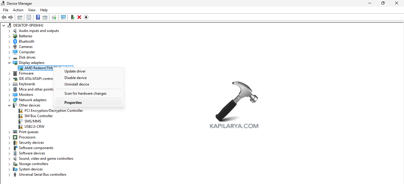 步驟2-接下來,右鍵單擊圖形驅動程序並打開“屬性”。