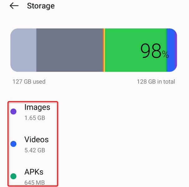 您的手機內存空間可能不足,導致 YouTube 無法離線加載任何內容。在這種情況下,請檢查設備的存儲空間使用情況,看看可以刪除哪些內容,為 YouTube 的本地文件騰出空間。